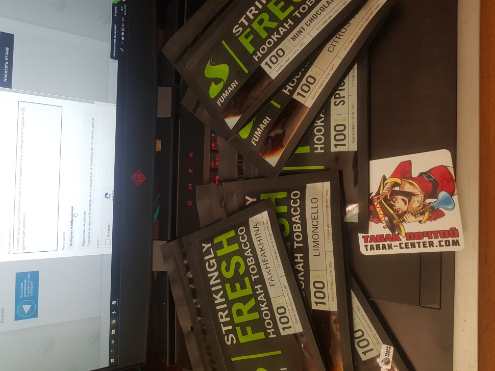 Дело в том, что я заказывал ранее табак через другой сайт и мне пришла "залипуха" фальсификатная, поэтому пока не пришел заказ отсюда, я не верил, что там. Я давно искал аььфахер двойное яблоко, а его уже в стране давно нет, а тут оказался. И к моему удивлению самый настоящий! Так что смело заказывайте. Что касается доставки и информирования - все на высшем уровне: четко и быстро. Молодцы!